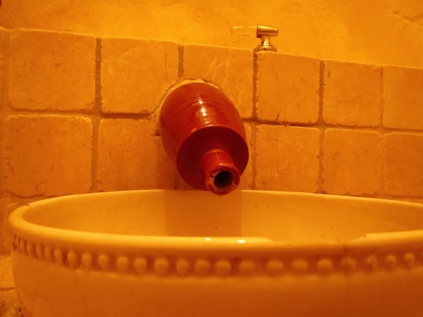 But, what did I find this time in the intriguing Sweetwater Kayaks restroom? What's the story behind this interesting orange jug faucet? Closing the tap will challenge you to find its sweet spot!